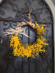 ミモザリースを作るとそろそろ春だなー🎵って…皆さんのミモザリースの作品沢山見たいなあ
