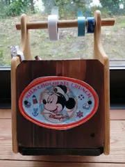 100均で作りました~😆 棒にマステぶら下げたのは、nohashiさんがやっていたのをパクりました😁 DAISOのカッティングボード 2枚DAISOの鍋敷き 3枚DAISO 棒 1本(カットしました)昔捨てずに置いておいたミッキー缶を中にいれてペンたての要領で、刷毛や割り箸など入