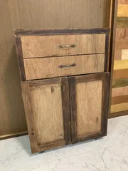 開き扉の収納から、引き出し式に改造。隙間が少なくなると共に、取り出しやすくなった。引出しレール固定のためのベース作りに苦労しました。