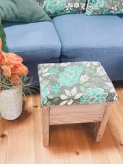 🍂🎃収納付きスツール♪♪ ワークショップに参加しました^_^しっかりした座りやすい椅子でかつ収納付きで便利です♪ソファーに座り足を乗ばすのにバッチリ、疲れが取れますょ、座面は持ち込み布で、帰宅後クッションも作りました♪いつもスタッフの方々にお世話になりありがとうございます^_^