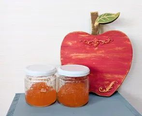 りんごジャム🍏 先日行ったりんご狩りで、実が赤くなるりんごを買ってきました🍏果肉は赤いのに皮は黄色なんですよ🍏ひと欠片食べたら酸っぱかったのでジャムにする事に🫙お手軽にレンチンで作りますレンチン1回目でこんな感じ数回繰り返すとキレイなアプリコットオレンジ色に✨りんご1つ分なので少量ですが、美味しくできました😆