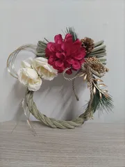 今年は、しめ縄作ってみました! 最近、皆さん手作りされる方が多いようで私も今年は、挑戦して作ってみました! 100円ショップなどで材料を買い安く済みました