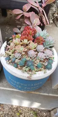 寄せ植えしました虹の玉(150)、樹氷(200)、リトルビューティー(100)、プロリフェラ(200)お得な苗たち🤭()は値段です寄せ植えに使いたいから増やしたい!!隙間が多いのは根が落ち着いたら、切って周りに差して増やそう思っていますまぁ、上手く育つかわかりませんがやってみよ~🎶