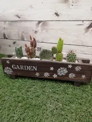 横長プランターとサボテンの寄せ植え