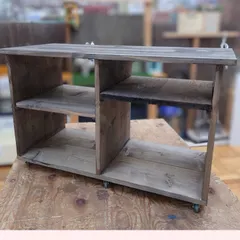 ローシェルフ ローシェルフ作りました✨収納庫の前に置きたかったので事前にキャスターを購入し、付けました。カッコいいのが出来ました😊