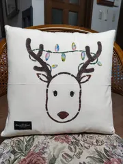 クリスマスバージョンステンシルのクッション・トナカイさん🦌、電球をイルミネーション風にしました😁‼️