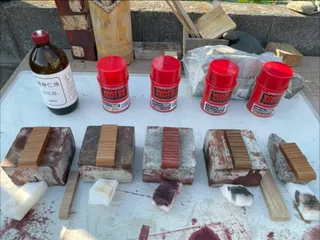 オイル物塗料の色見本(ホワイトオーク編) 今年1月に購入してたホワイトオークの端材詰め合わせ。具体的に作品が作れる環境が整ってきて、何点か計画中です。ホワイトオーク端材の詰め合わせです。非常に堅い材なので、塗装も考えて臨まないといけなさそうです。先日の合板編に続いての色見本作成です。左から、亜麻仁油、ワトコオイルのナチュラル、マホガニー、エ