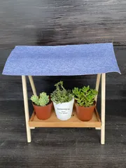 アレンジアワード2022 屋根付きプランター 前回、収納付きスツールを仕上げた時に腰掛けカバーを替えて、使わなくなったブルージーンズ柄の生地が勿体なく、何かに活用できないかなぁ…🤔と考えたのがこれ。 100均のイーゼル2本約24cm×16cmトレー1枚で仕上げてみました。トレーは撮り忘れた💦 &nbs