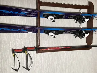 スキーラック 趣味のスキーの板をシーズン中は何時も玄関口に立てていますが、シーズンオフスキー板を収納の為にラックを作成致しました 材料は1×4を一枚で納めました。 据付の場所の前が狭くて写真がいまいちです😭