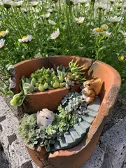 やっとアニメーションプランターに寄せ植えして飾ることが出来ました💕✨ このプランターは、大小と2種類ありどちらにするのか悩みましたが小さいのにしました😊 多肉植物を植えて最後に100均で購入したピックをさして完成! このアニメーションプランターは、他にも種類