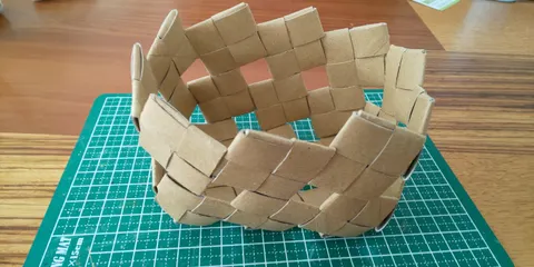 カゴ カインズのレシピを見てトイレットペーパーの芯を使って作ってみました☺️サイズは小さめで立ち上がりのところ少し悩んだけど完成!!動画観ながらなのでわかりやすかったです好きなサイズで作れるから良いかも😆