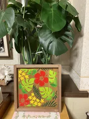 今日は5作目の【南国の葉】ミニサインボードを作成。本物の葉のモンステラと一緒に📸