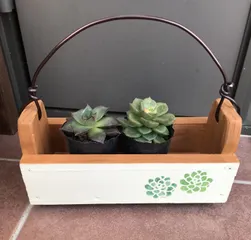 多肉寄せ植え鉢❓寄せ植え箱❓何て名前で呼べばいいのか❓初めて作ってみました。プレゼント用です☺️リバーシブルにしてみました🤭底は6ミリの穴を開けて綺麗に開けるのは難しい😆完成😁多肉をたくさん育てている方なので多肉は入れないでプレゼント🎁喜んでもらえたらいいなぁ🤔
