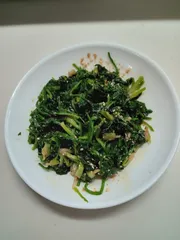 ■材料 ほうれん草、炒りごま、すきやきのたれ■ほうれん草茹でます、水にさらしてアク抜きしている間に、炒りごまとすきやきのたれを混ぜる茹で上がったほうれん草を食べやすい大きさに切る。ほうれん草とタレを和えたら出来上がり!■工夫ポイントすきやきのたれと炒りごまだけ超簡単美味しいですよ!