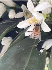 我が家に訪れてくれた働き者 毎年お世話もしないみかんの木今年も沢山の花が咲いてくれました。今年もどの位身を付けてくれるのだろうと思いつつ見ていました。微かなブゥーンと羽音が聞こえてきます、何処からと辺りを探すと何やらみかんの木から聞こえてきます。居ました今年も家主が世話をしないのだろうと2・3匹の蜂がお世話に来てくれていました