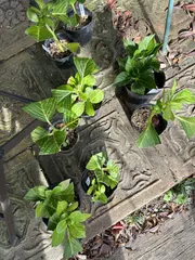 挿しめ、4種類、購入苗ひとつ、計8ポットの植え込み 6月に気に入ったこ、4種類の挿しめがすべて根付きましたし、新しく真っ赤になら紫陽花を予約購入しておいたものが届きましたので、今から、植える条件に合った場所を探して植え込みします。来年の6月に綺麗な花を咲かせてくれるように、思い浮かべてがんばりますね。
