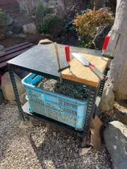 庭木処理台 昨年末、伐採に踏み込んだ紅葉(リンク→ https://diy-square.cainz.com/announcements/be2fvwyryuwy4si9 )の太枝の処理の為にとりあえず間に合わせで。高さは60cm位、この位の高さが膝が疲れなくて丁度良いです。下段には洗浄した小砂利を収めたバスケ