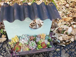 多肉のおうちに寄せ植え 直接植えるのは心配だから中にパウンドケーキの型を入れて寄せ植えしましたいつでも取り替え自由です🎵