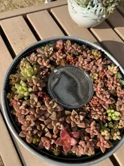 小さな多肉を集めて作りました。土台は100きんのふるいと鉢底ネットです🤗