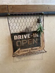 100均の魚網を曲げてサビ加工😀ラスティックメディウムでサビ感うまく出ますよ👍レザーのきれを丸めてフェイクグリーンを飾り、男前な木製ボードもヤスリでこすりながらサビ加工、茶色アクリル絵の具🎨などで字の部分も汚します。それをワイヤーで付けてみました。最後にアイアンの鳥も掛けて完成❣️😄男前トイレにキリ