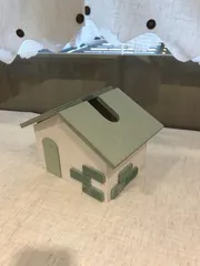 おうち型ティッシュケース 本日は、おうち型ティッシュケースを作って来ました❤️普段あまり使わない色を塗ってみました。撥水のホワイトと、撥水のダスティグリーンです。夏っぽい涼しげなお家になりました❤️