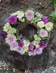 葉牡丹リングリースの寄せ植え リングリースを直したので、早速葉牡丹を寄せ植えしました😊💕✌️鮮やかな紫色の葉牡丹は『ムーンドロップ🌛』後は、ファミリーやデュエットなどばらして入れました😄🎶👌