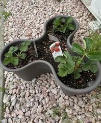 はじめてのいちご🍓 娘がいちごを育てたいとのことで初めていちごを育ててみます😊お花を植えたりすることも初めてなので、これでいいのか不安、、、 3種類の食べ比べが出来たらいいな🍓