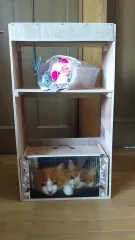 アレンジアワード2022【ペット?収納棚】 作りたかったペットウェアドレッサー、日程が合わず、悶々としていました。 端材を集めながら、時期を狙っていざ!1、弟の仕事場から材料調達2、寸法希望なしで、3、イメージはまさにこれ☝ 4、端材だから合わせ技5、引き出しは収まった! 6、段違い平行棒?7、サンド