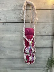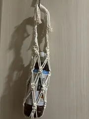 ペットボトルホルダー❣️ 午後はマクラメ編みのペットボトルホルダーを作ってきました❣️マクラメシリーズは3作目の参加ですがまた少し違う結び方で勉強になりました😁忘れないうちにあと何個か作ろうと思って紐を買おうとしたら在庫切れでした💦