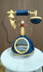 アンティック風の電話鉢 先日トークで話した、ロートとザルですいろいろアイディアありがとうございました☺️🎶私が作ろうと思ったのは、アンティック風の電話です😆 どうやら変人からの電波を受信するとリンリン🎶☎️鳴るらしい🤭なんてね😚🎶 時を戻そう~どんどん過去へ⑤ニスを塗って完成!!上から見ると、多肉を植え