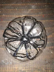 ステンドグラス風作成中 こんな形なのでデコボコを利用してペットボトルの底がお花のようになっていて底のデコボコを利用してまずはフチドリ