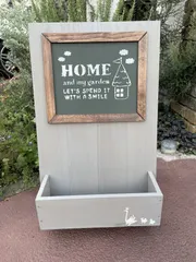 黒板付フラワープランター🌸 お店で作られてのがとっても可愛かったので同じ色でしました😁スタッフの方お手製の真っ直ぐ木が切れるので、真っ直ぐ切ることが出来ました♡みっちり教えて頂きありがとうございます✨ 実はなんか横も可愛いんです♡