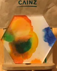 推しカラーで作るアルコールインクコースター 文化の日に、この様な、WSに参加できて大満足です(((o(*゚▽゚*)o))) また楽しいWSを企画してくださいマセ。 ワンコの缶バッチ作りもあって、楽しかったですぅ🐶
