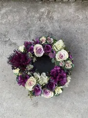 葉牡丹リース 友人に頼まれて葉牡丹リースを作成しました😊嫁入り前に我が家のリースと記念撮影🤣🤣本日お嫁に行きました😊