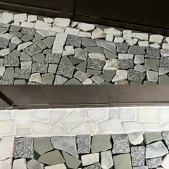 初めての目地入れ✨ 目地材初体験!!!!半乾きで拭くと石のとこだけがキレイに拭けてなんか気持ちよかったー😆😆😆