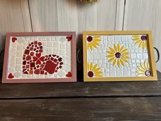モザイクタイルのトレー✨ カインズのWSの物と同じ大きさで作りました😁1人のご飯の時に使うつもりで作ったのですがもったいなくて使えていません😅