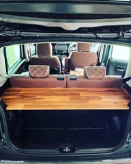 ハスラーのラゲッジボード カインズのアカシア材(塗装済み)を使ってラゲッジボードを製作。幅に合わせてお店でカットしてもらい、サイドをジグソーでカットしただけの簡単DIYですがいい感じになりました🥰
