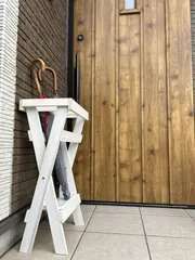 たためて収納できる傘立て☂️ 昨日のワークショップで作った傘立てです♪色々サイズの印☑️や金具をはめるのになかなか苦戦しました。丁寧ににいつも教えてくださりほんとうにありがとうございます。 外に置くと素敵ですが、日焼けもあるしやはり室内ですよね🥹🫣