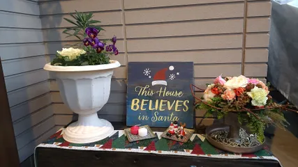 初投稿✨「ミニガーデンチェア」DIY14作品目エクステリアカラー ホワイト🤍車で1時間の店舗までお邪魔しました!時間押しながら、ステンシルさせていただき素敵な作品になりました❣️サンタのアイアン人形も可愛くて一目惚れ。半額になってたみたい〜✌️気に入り過ぎて😍玄関先に置く予定がリビングに。クリスマス