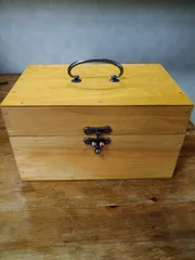 ステイン塗料を使った薬箱 かくし釘を今回初めて使いました!頭をカナヅチで叩いて割るのですが気持ち良くてクセになりそうです🤭(笑)中はこんな感じです☺️