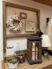 淡い色使いで、ステンシルとマッチして素敵ですね。 私は、玄関先で園芸用品を入れて使用しています。