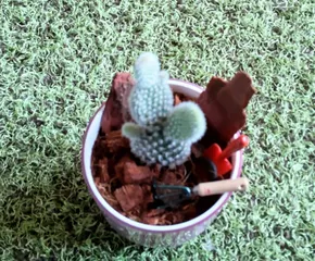 100均のサボテン DAISOで可愛いサボテンを発見したので思わず購入💗見方によってはMickeyもしくはウサギ?ウッドチップ 添えるなら 素焼きの鉢の方が良かったかな?