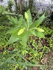 ゆりの花の蕾が大きくなりました ゆりの花の蕾が膨らんできました。夏に向けて庭の花が少なくなって来ましたがいよいよ「ゆりの花」の出番です。でもこの花の種類、忘れてしまいました🙏