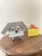 シュナウザーの置物🐕🦺 ワークショップによく一緒に参加する次女(小4)は図工の授業を楽しみにしています👧最近は、のこぎりと金づちの使い方を勉強していて、めっちゃ楽しい〜と聞いていました👂その授業で作った作品がこれです⬆️⬇️以前、カインズで作ったアニマル貯金箱がお気に入りで、仲間を作りたかったそうです🐈⬛🐕かわいい😍