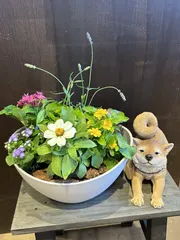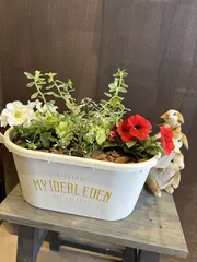 ペチュニアの寄せ植え 名古屋みなと店にて ペチュニア2株 ブルーテージ ユーフォルビアダイアモンドフロスト ヘリクリサム を1株づつ 植え込みました。 花の向きを考えながら、ウォーターラインを注意してと 皆さんと楽しく作りました。