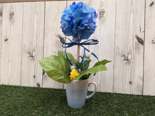 アジサイのトピアリー 本日は名古屋みなと店でのワークショップ。月も変わりましたので、アジサイのトピアリーを作ってきました。最初の一歩どんどんつけてくなかで、バランスを気にしながらで頭を悩ませながら、なんとかできました。こんなんできましたけど?アジサイの葉っぱはどうしようか悩んだ結果、下にバランスよく配置してみました。丁度