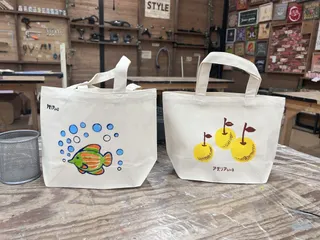 アデリアレトロなトートバッグ(花レース) ■作品内容アデリアレトロなトートバッグを作りました。見本は赤い花でしたが、私の大好きなブルーの花にしました。葉っぱや茎の部分はグリーンで。■こだわりポイント布絵の具でステンシルをする時は、とにかく絵の具をつけ過ぎない事。薄く薄くトントンと。を意識してステンシルしました。これで、裏に絵の具がうつること