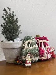 ■作品内容キットの赤い巾着を編んで楽しくて色違いのグリーンを編みました。赤とグリーンでクリスマス🎄グリーンの巾着にライトアップ💕