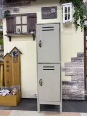 ロッカー風チェスト ■作品内容作りたかったロッカー風チェストのWSに参加しました。 ■こだわりポイントステンシルがブラック指定だったので、ステンシルが映えて、よりロッカーらしく見えるように新色のグレージュにチャレンジしてみました😊