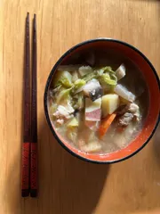 芋汁 ■育てた野菜さつまいもが収穫できました長ネギも育ちましたジャガイモ、椎茸は初夏にできたものを保存しておいたもの ■エピソード(チャレンジしたきっかけなど)ちょっぴり寒くなってあったかい汁物が欲しくなりました ジャガイモ、(メークインにシャドークィーン)ネギしいたけ(冷
